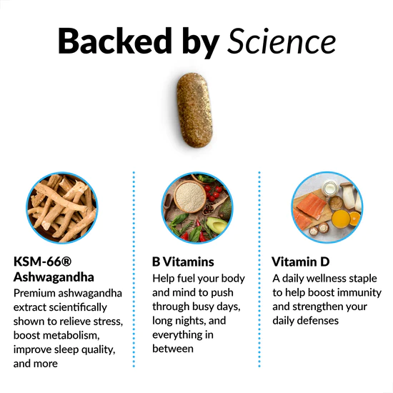 - Powered by KSM-66® Ashwagandha