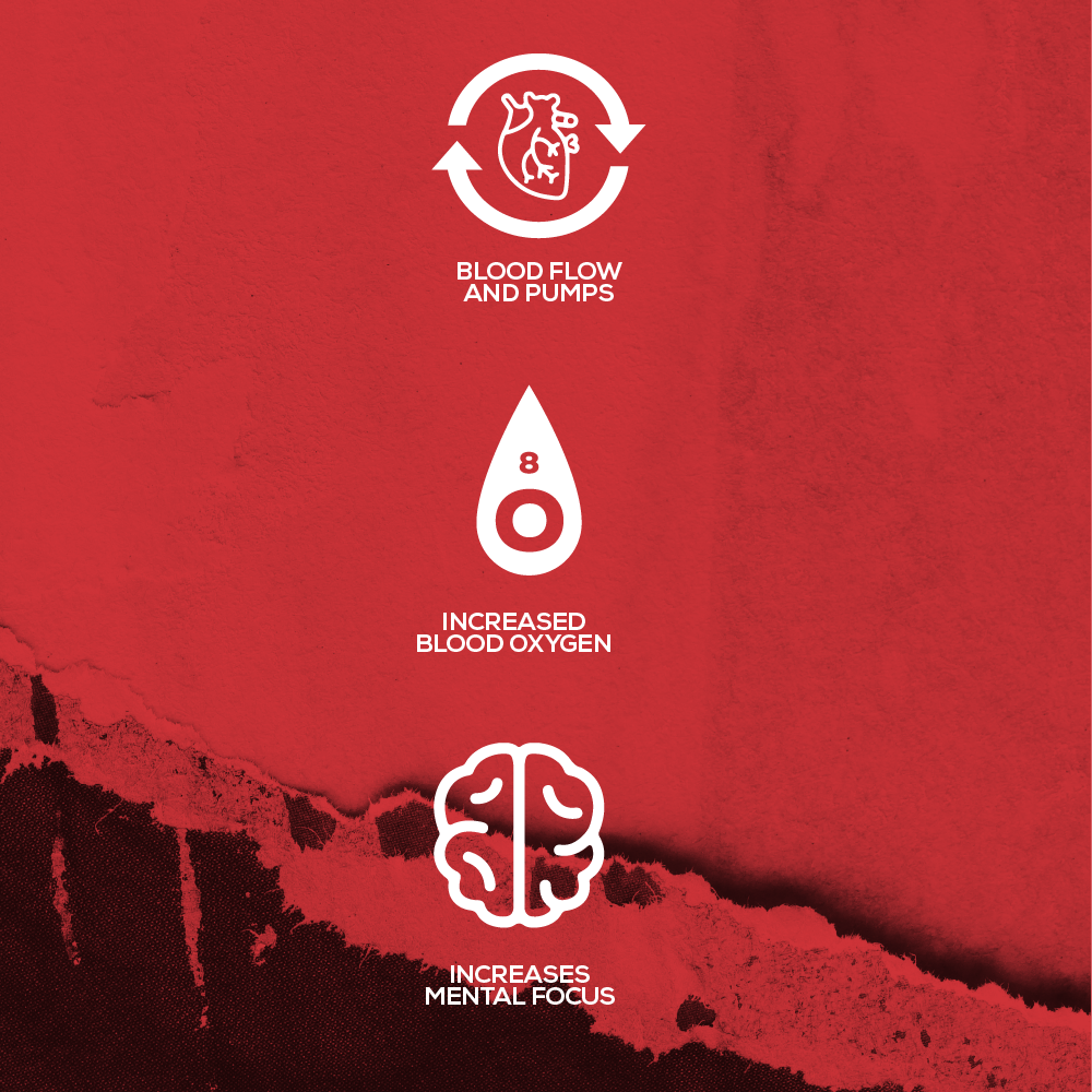 – Pumps so powerful your muscle threaten to split your skin – Optimises nutrient delivery for increased endurance, buffered fatigue and heightened muscular output – Boosts alert and wired focus for an ‘in the moment’ session – Extends and boosts energy without the use of stimulants