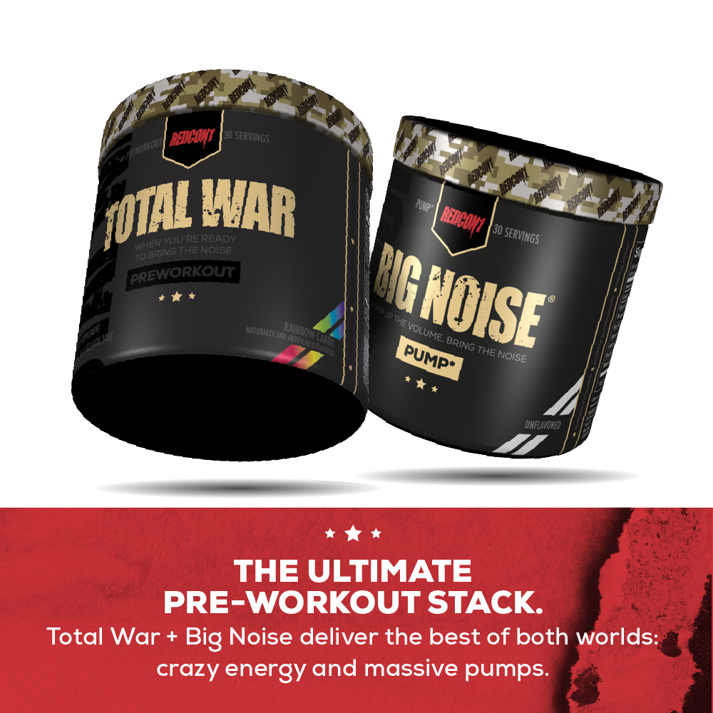 As mentioned, sometimes pre-workouts are as much about what’s in them as what’s not. Big Noise notably leaves out all forms of stimulants. While your muscles and brain remain very much in function and power through your pump and nootropic formulation, the excess stimulation to your body that can often be the cause of lack of sleep late at night is eliminated. This places it as the perfect pre-workout for large variety of users and purposes. Big Noise is for the people who have a low caffeine tolerance, those who train in evenings, or even those who want to add a little pump magic to the power of Redcon1’s premier pre-workout – Total War.