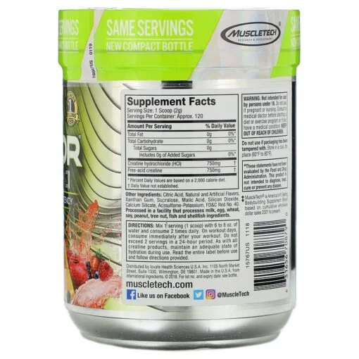Creactor™ is a scientifically advanced creatine that delivers a potent, micro-dose of creatine. Each serving delivers 750mg of 100% ultra-pure, laboratory-tested creatine hydrochloride (creatine HCl). Plus 750mg of free-acid creatine — the purest form of creatine, free of acids and salts. This powerful never-before-seen ratio of creatine molecules delivers an ehnanced creatine experience!*