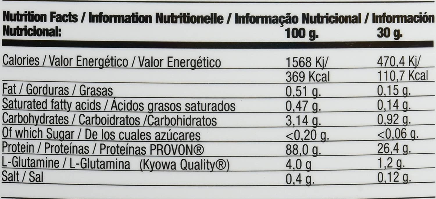 It contains high doses of proteins, glutamine and BCAAs and with a minimum contribution of carbohydrates and fats. It provides a percentage of amino acids greater than any other protein in the market.