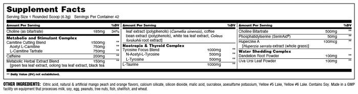 Animal Cuts Powder is the next level when it comes to thermogenic fat burners. While most pills and powders are just loaded with stimulants to make you “feel” the product and “think” it’s working, Cuts Powder is backed by real research on ingredients that actually assist in burning fat. The product is based around our Carnitine Cutting Blend, which is comprised of Acetyl L-Carnitine and L-Carnitine Titrate, two forms of carnitine that have a proven track record in shrinking fat cells. Cuts Powder can be used equally by women and men as your go-to weight management supplement, making it part of your daily regimen that should include a proper diet, good meal preparation habits, and daily exercise. Just like its brother product, Cuts Powder also uses a bit of herbs like Green Tea Leaf Extract and more to give your metabolism a kick in the rear as well as a water shedding complex to expel excess water weight and give the user that “shrink wrapped” look. We use two types of Tyrosine (an amino acid linked to improved focus) to make sure you stay engaged and zoned-in during your cardio and workout. Last, but certainly not least, Choline Bitartrate was included to enhance carnitine retention and make the product more effective overall. If you’re in the business of incinerating body fat, slimming down and losing some extra weight, Animal Cuts Powder is for you.