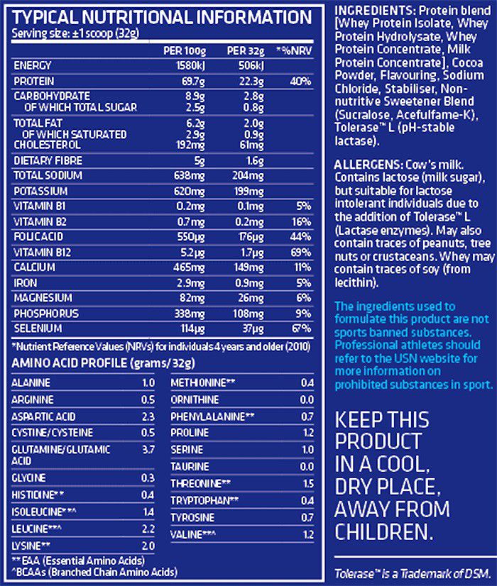USN Bluelab 100% Whey Premium Protein was developed with professional athletes to give you a high-quality great tasting shake.